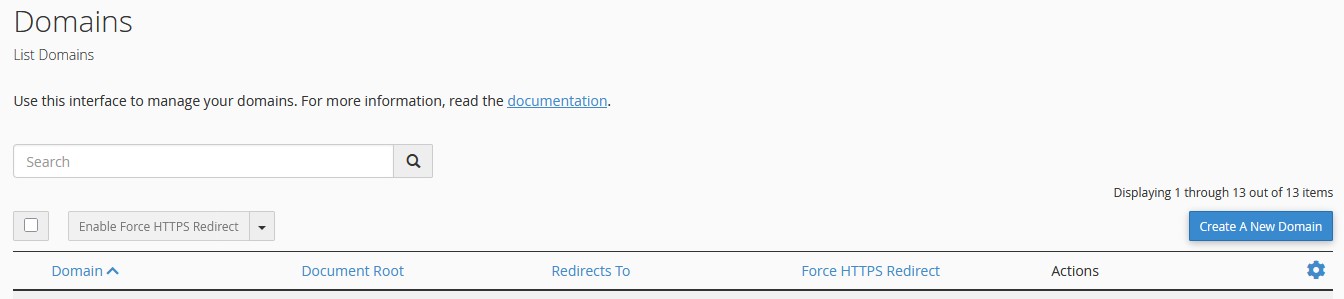 Within cPanel there is a section headed Domains. Here is where you manage domains, the section will list all of your registered domains that are related to websites hosted by this hosting service.